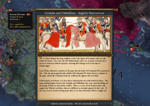 This is a heavy work in progress, because of how extensive it is, but there are finally some events that tie specifically to this continent. It creates a bit of early game intrigue if you start in Italy. Sicily is specifically a winner in this case, as it helps develop the country’s early game start. At the 1215 start, Sicily was at the height of its diplomatic and miliatary power, but the country can be underwhelming to play because, in VU, it lacks certain things other countries have like a fully developed mission tree and custom events. And of course, because the Hohenstaufen dynasty was right in the middle of the conflict between Guelphs and Ghibellines, this becomes a central part of the early game if you play as Sicily.